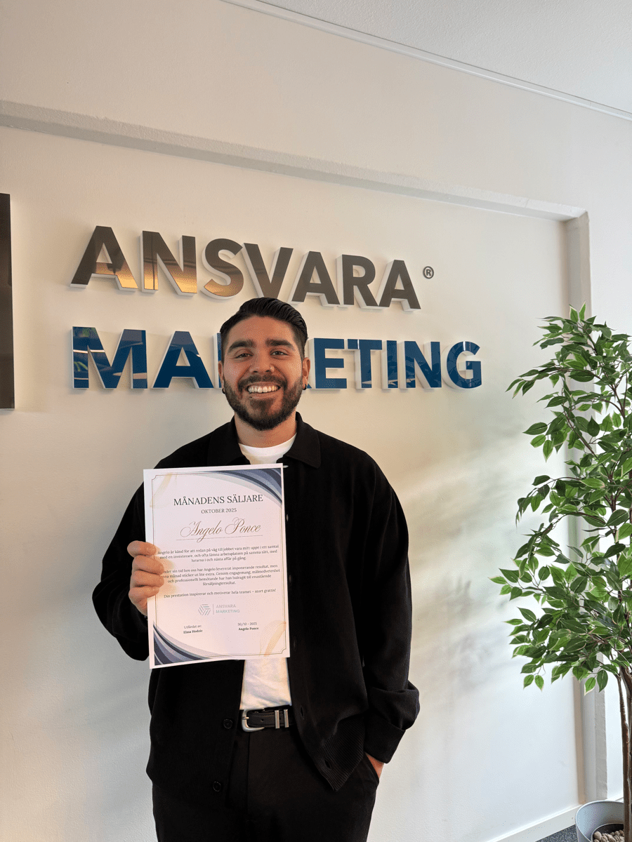"Jag trivs på Ansvara Marketing eftersom jag får vara med och bygga både vår kultur och vårt team. Det är fantastiskt att se hur vi tillsammans utvecklas, och att jag varje dag kan bidra till både medarbetares och företagets framgång.